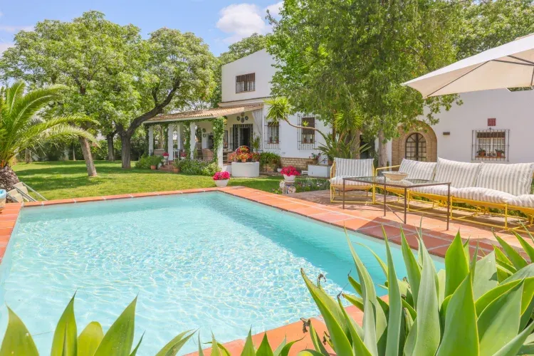 Cuenta con piscina y 2 baños + vestuario exterior adaptado para minusválidos, césped, chill-out y barbacoa y mobiliario de jardín. Ideal para alquilarlo con familia y amigos.