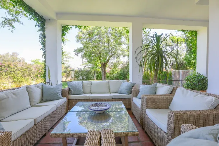 Un gran porche con mobiliario cómodo y acogedor, con vistas donde disfrutar de unos magníficos atardeceres, 2 salones espectaculares con techos con vigas de madera, cómodo mobiliario y una gran chimenea en cada uno de ellos que brinda a los inquilinos el escenario perfecto para disfrutar con la familia y amigos de una jornada inolvidable.