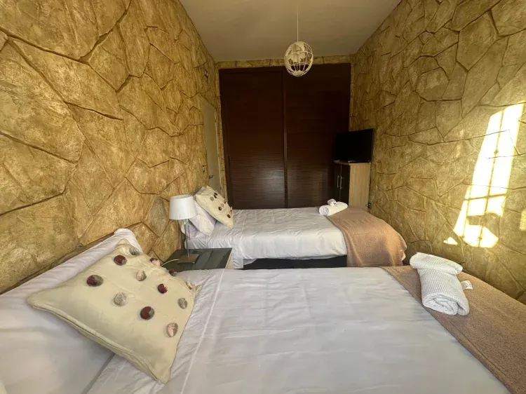 Villa con 3 dormitorios (1 - cama 1,40x200, 2-cama 1,50x200, 3-2 camas 90x200), 1 baño en interior, salón con cocina americana, todas las estancias con SmartTv y fibra óptica.