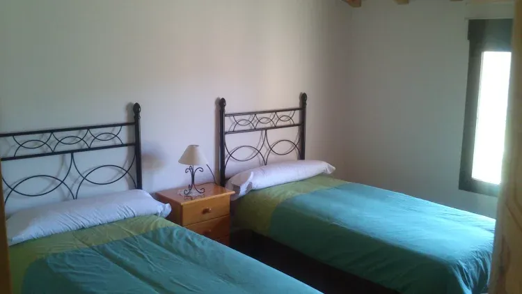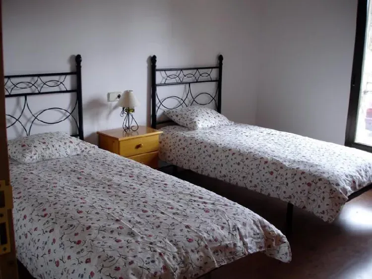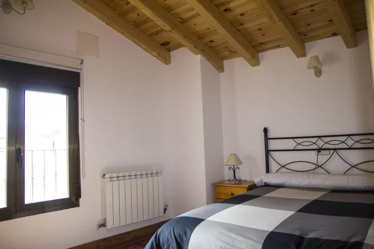 Consta de cocina completa y está comunicada con el salón a través de una coqueta barra forrada en piedra de losa de la zona. El salón está provisto de una acogedora chimenea con ventilador termodifusor para que la estancia sea los más agradable posible. Tiene cuatro habitaciones dobles de las cuales una de ellas es tipo suite con baño completo en su interior, y las tres restantes disponen de otro baño completo compartido.