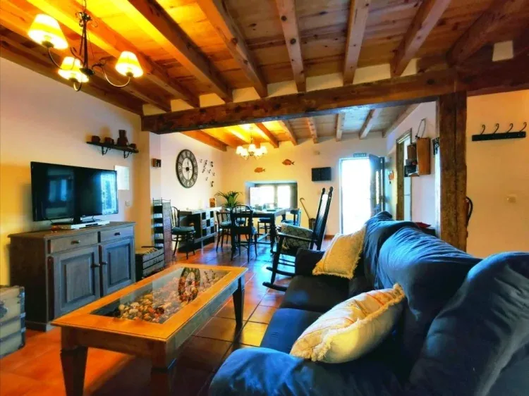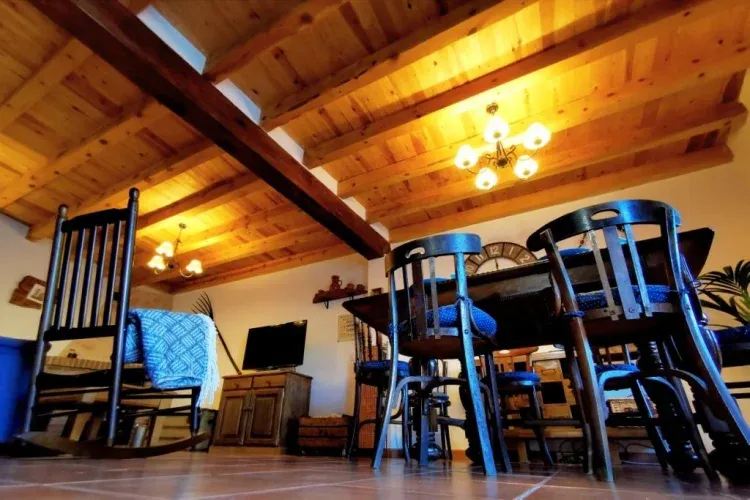 La casa ofrece un ambiente rústico y acogedor, gracias al uso de maderas en vigas, techos y suelos.