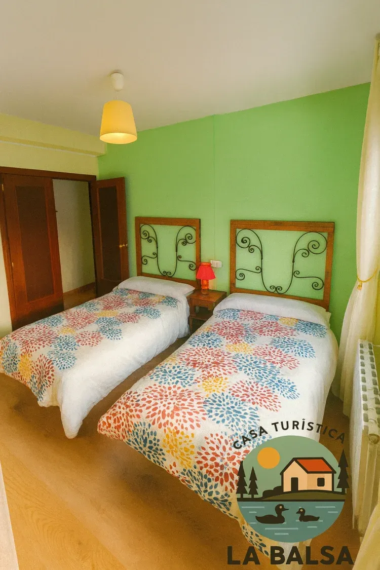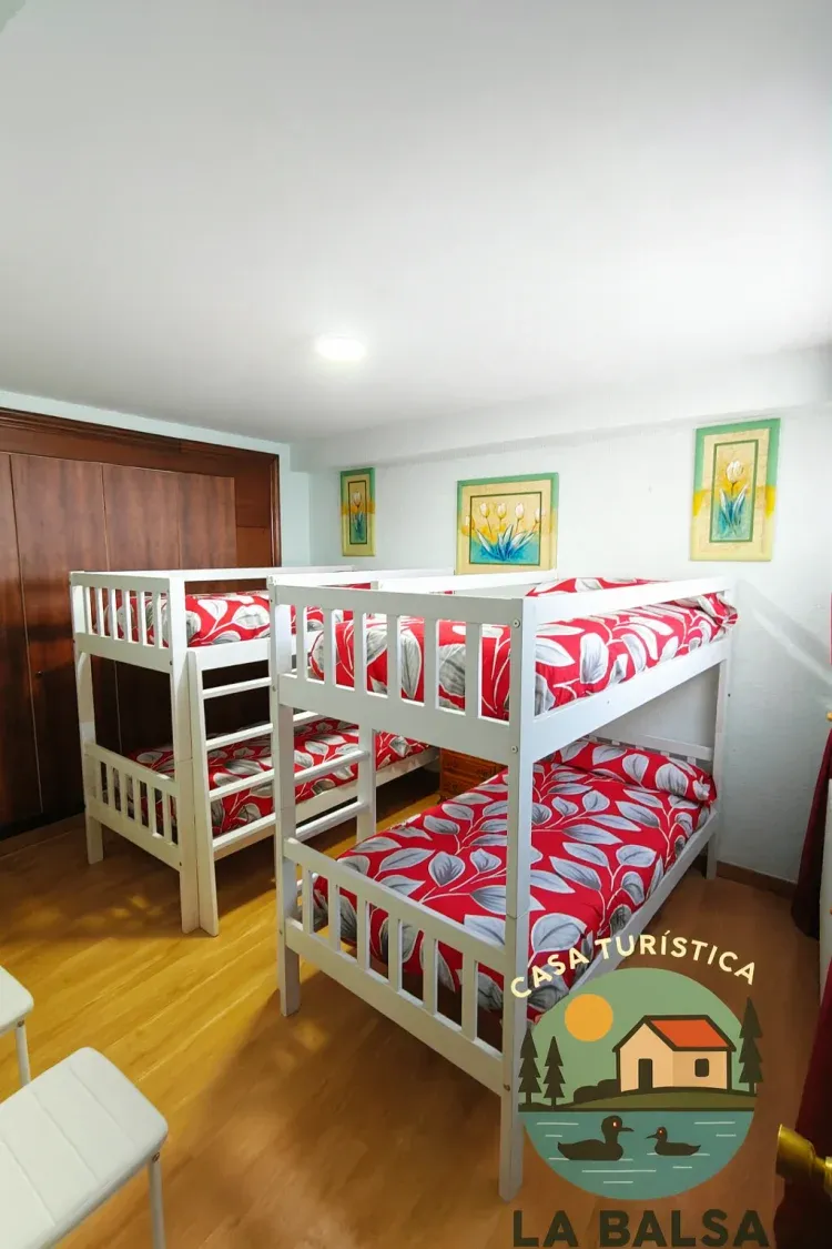 La Balsa es una acogedora casa equipada con tres habitaciones: dos de ellas cuentan con dos camas individuales de 90 cm, y la tercera dispone de dos literas, ideal para grupos o familias.