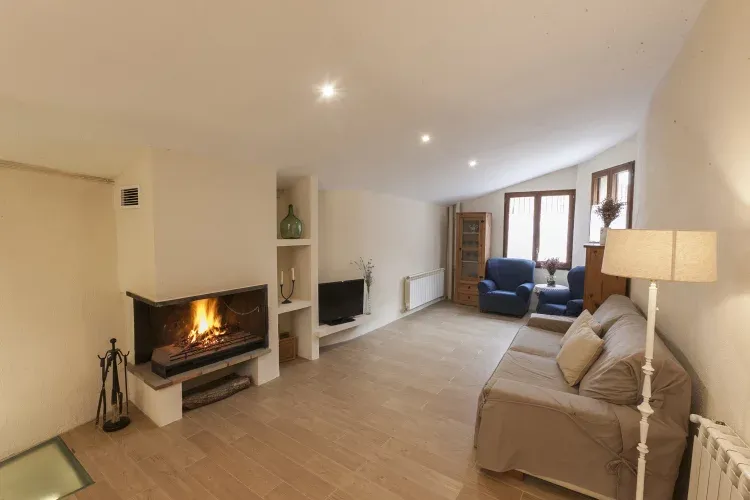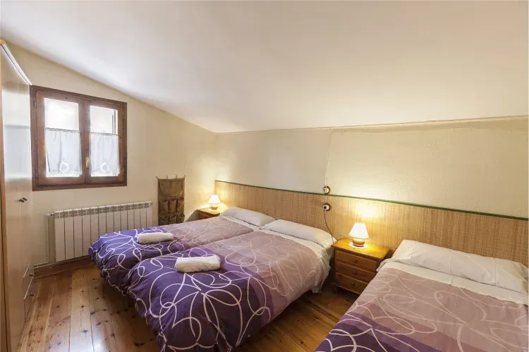 La vivienda se estructura en dos plantas. En el nivel inferior se encuentra el recibidor, con un estilo rústico muy marcado, uno de los baños completos, la bodega y una cocina totalmente equipada que dispone también de televisión. En la planta superior encontramos el salón, que cuenta con una gran chimenea para esos días un poco más fríos, el dormitorio de matrimonio y los dos triples, además de otro baño completo. El número de habitaciones nos otorga una capacidad de 8 a 10 personas.