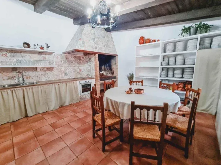 . Barbacoa con leña gratuita, horno moruno, mesas y porche cubierto.
