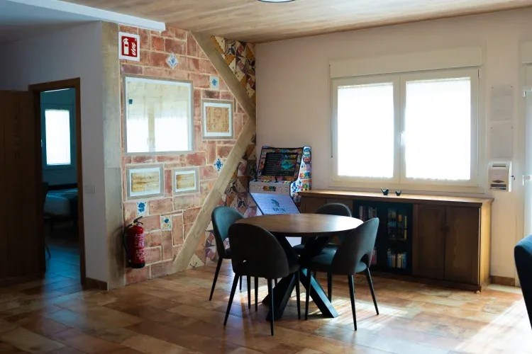Casa Rural Dux Toledo se ubica en un entorno muy tranquilo, el tipo de construcción como vivienda unifamiliar con materiales de primera calidad, el sistema de climatización es de aerotermia proporcionando una temperatura adecuada tanto en los meses de frío como en los de calor. La casa cuenta con seis amplias habitaciones y tres baños, de las cuales una habitación y un baño son accesibles. Si el objetivo es el descanso y la diversión la casa cuenta con una refrescante piscina, mesa ping pong y ajedrez gigante en el exterior, además de una barbacoa. En el interior, biblioteca y juegos de mesa, hay un rincón perfecto para que pequeños y mayores puedan disfrutar de una máquina de recreativos estilo vintage con más de 9000 juegos. Los servicios de que dispone tanto en el interior como en el exterior de la vivienda, la cercanía a zonas comerciales y de servicios de salud, así como el que pueda disponer de una cocina equipada como si estuviera en su propia casa, hacen de DUX TOLEDO el lugar ideal para poder disfrutar unos días culturales o de descanso en el entorno de la ciudad de las tres culturas y patrimonio de la humanidad que usted estaba deseando conocer.