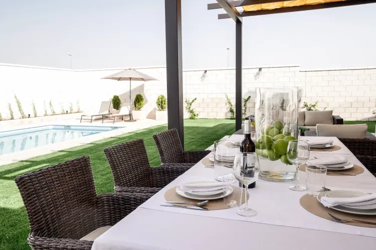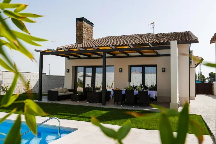 El Arrabal de Toledo es una casa de alquiler integro con capacidad para 8 plazas más 4 adicionales. Dispone de todo lo necesario para una buena estancia, con todo lujo de detalles, un agradable salón con chimenea para tener unas calidas tardes en invierno y unos exteriores para disfrutar del verano en la piscina y su formidable jardín.
