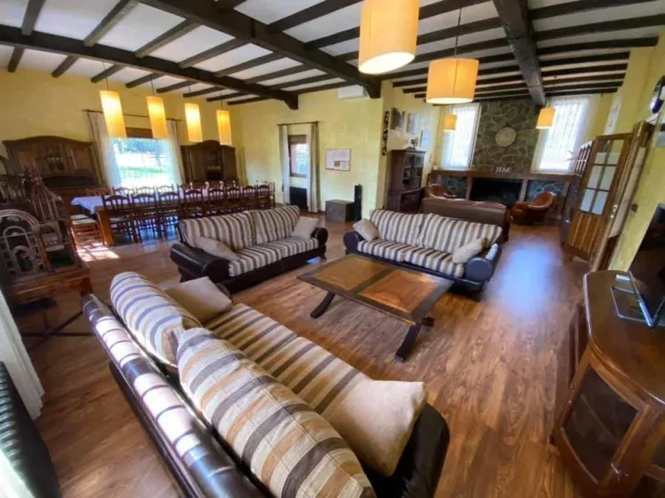 La casa principal es un homenaje al gusto por lo rústico integrando todas las comodidades del siglo xxi. Baños en las habitaciones , wifi, cocina con todo tipo de menaje y electrodomésticos, barbacoa, amplio salón con chimenea, terraza chill out, climatización , tv, ping pong.