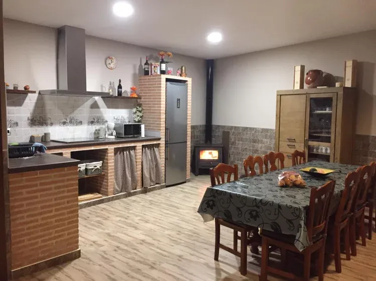 Esta casa rural cuenta con 4 habitaciones, 3 baños completos, cocina completamente equipada, televisión...aire acondicionado en el salón de reuniones la vivienda que suelo radiante y refrescante