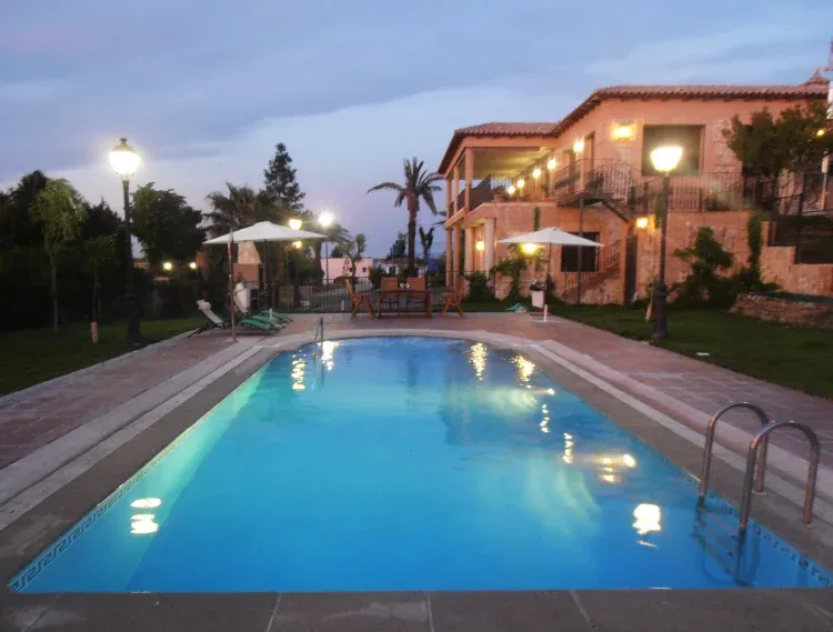 Ubicada en una parcela de 10.000 metros cuadrados, en un entorno de vegetación y arboleda, a los pies del Campo de Golf Pablo Hernández. La pista de pádel y la piscina, miran los encantos de esta majestuosa casa rural.