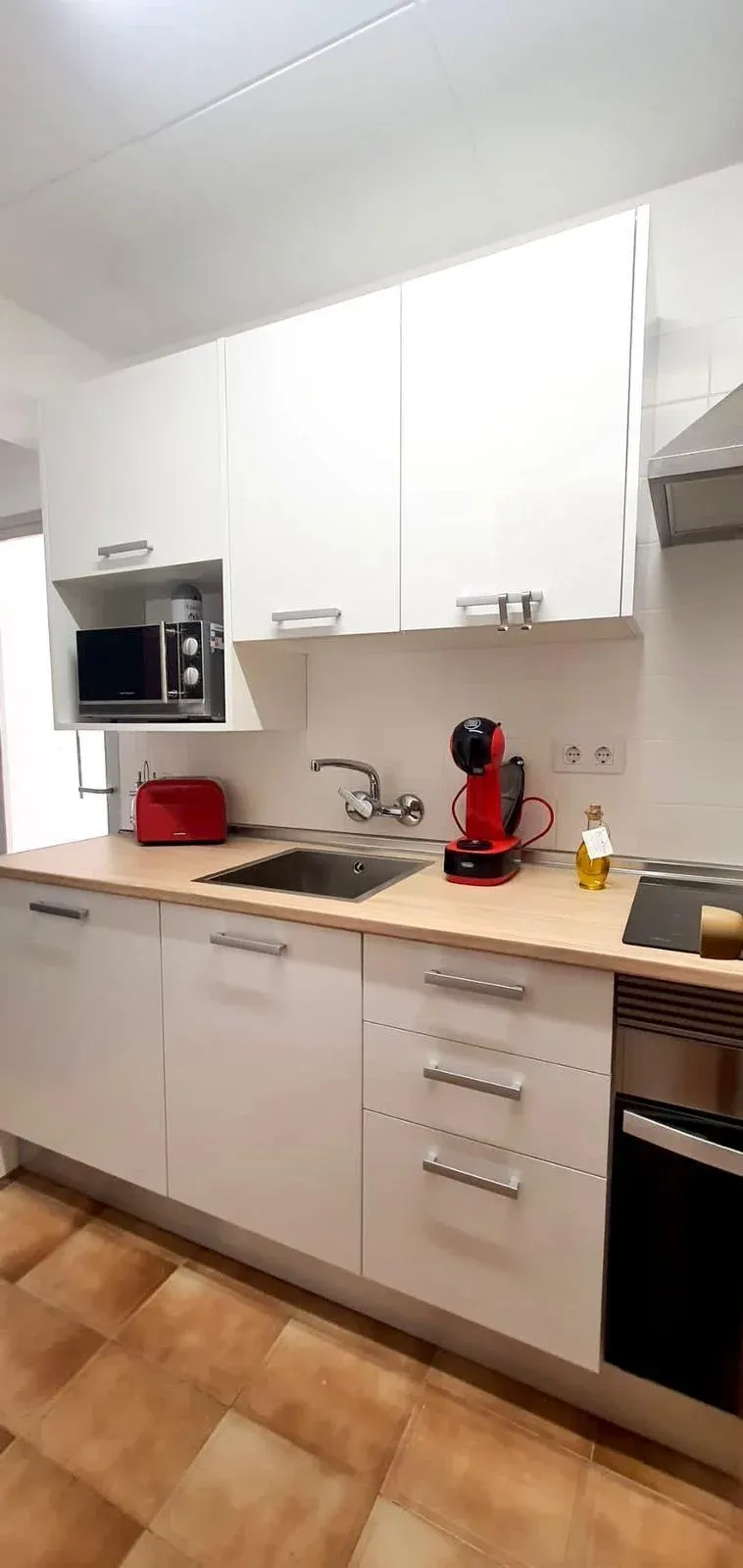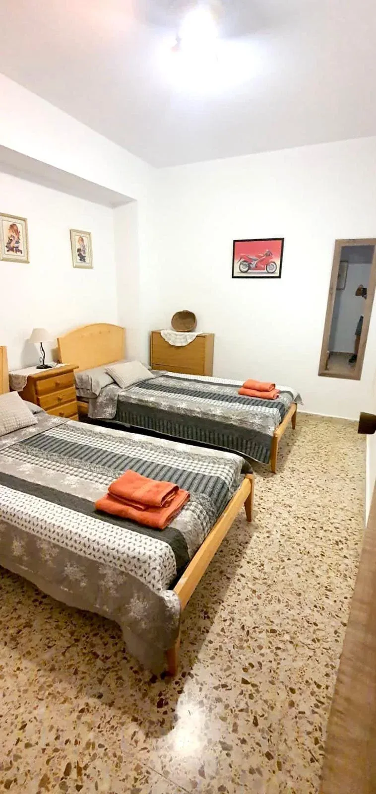 Estupendo apartamento de 95 mts2. muy cercano al a la zona de polideportivo y piscinas municipales y a la vez céntrico solo 300 mts de supermercados, bares y centro médico. Bien comunicado con zona de aparcamiento público gratuito. Con capacidad para 6 huéspedes. Tres habitaciones , cocina independiente, Terraza con mesa y sillas, 1 baño con ducha , cafetera, tostadora, tv, toallas y ropa de cama, entre otros complementos.