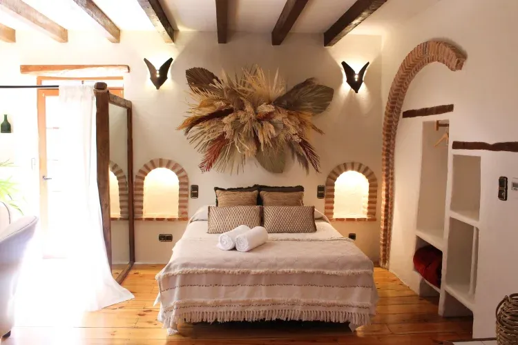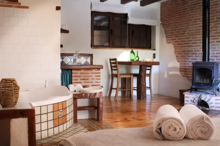 Es un espacio abierto que dispone de cama de matrimonio, jacuzzi y pequeña cocina y sala de estar con chimenea.