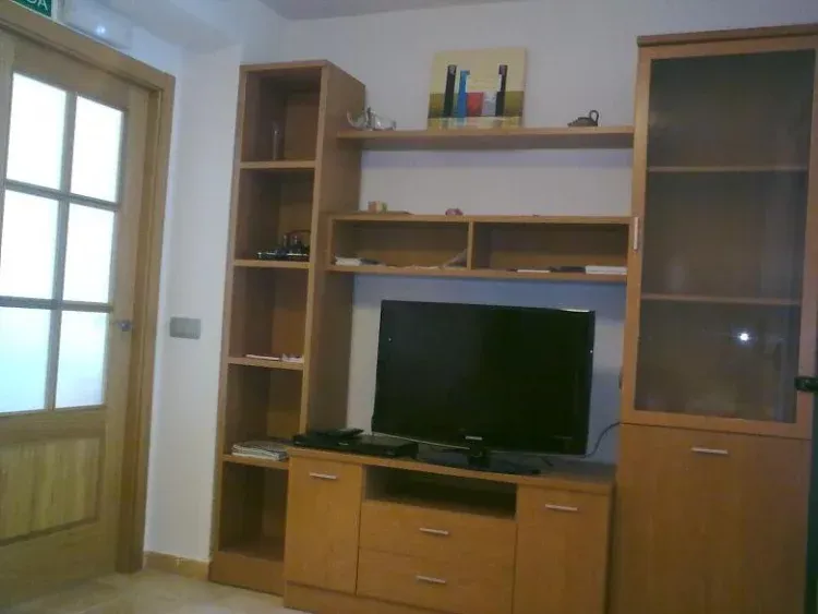En la parte de abajo, en un único espacio está la cocina-comedor-salón, en la parte de arriba dos dormitorios y el baño, si traen un bebé le ponemos una cuna, si traen niños, le ponemos defensas para que no puedan acceder a la escalera; tiene todos los servicios que se necesitan en una casa, frigorífico, microondas, vitrocerámica, lavadora, lavavajillas, calefacción, mesa y sillas en la terraza.