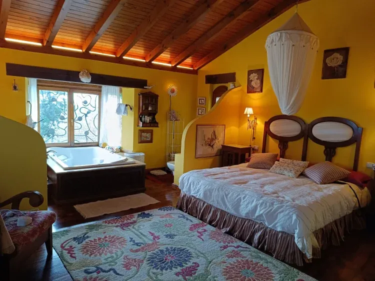 Con capacidad para hasta 18 personas (aunque lo ideal son 8-12), La Casa de Ana ofrece el espacio perfecto para familias, grupos de amigos, retiros espirituales, eventos de empresa... Dispone de 4 acogedoras habitaciones —destacando una suite con una espectacular bañera de hidromasaje con vistas al jardín—, un salón con chimenea y smart TV de 65", una amplia salita para compartir comidas y veladas con smart TV de 55", cocina completamente equipada, tres baños y conexión WiFi en toda la casa. También podrás disfrutar de una increíble terraza solárium equipada con telescopio para disfrutar de la astronomía en las noches estrelladas.