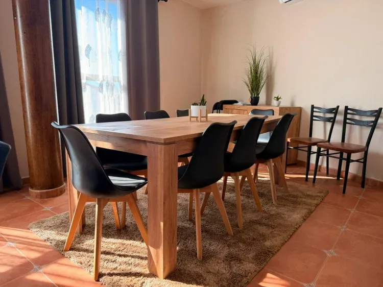 La casa está situada en un punto estratégico del pueblo de Pereruela (pueblo alfarero) encima de la tienda de alfarería Rosa, teniendo entrada por la parte trasera, nada más entrar en el holl tiene un baño, subimos al primer piso y se encuentran las habitaciones de Gala, Hugo y Martina, con un baño completo, holl muy amplio y un salón cocina con grandes ventanales., subiendo al bajo cubierta tenemos la habitación familiar llamada Fernando, con un baño completo.