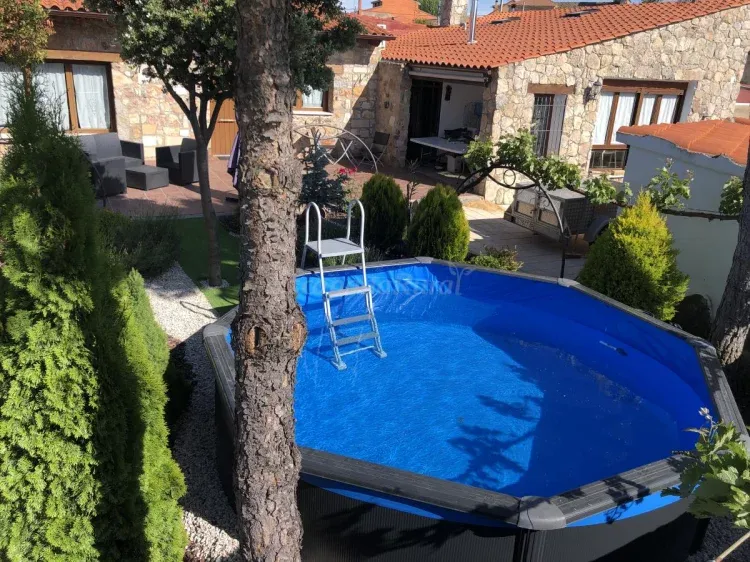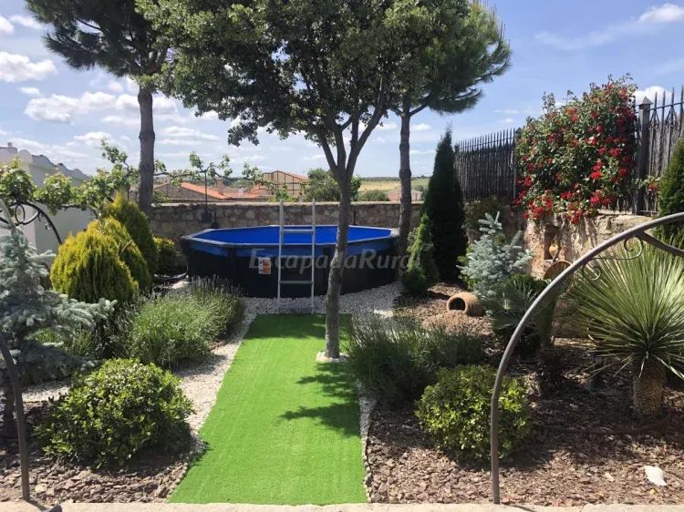En la tarraza-jardín hay una piscina de 3,5m de diámetro y 1,20m de alto, una barbacoa, mobiliario de jardín y asientos.
