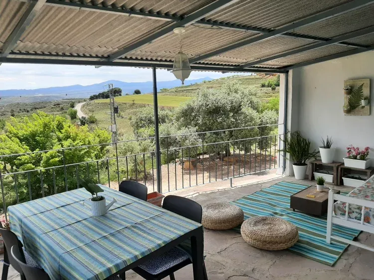 Con su acristalada entrada, sala de estar, comedor, cocina, 3 habitaciones, le harán sentirse como en su propio apartamento privado frente a las viñas de la DO Campo de Borja.