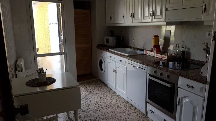 La cocina está completamente equipada, con lavadora, lavavajillas, horno, vitrocerámica, campana, microondas, cafetera de cápsulas, todo el menaje necesario y una mesa para 6 personas. La cocina da acceso a una despensa donde está la nevera así como todo el espacio necesario de almacenaje.