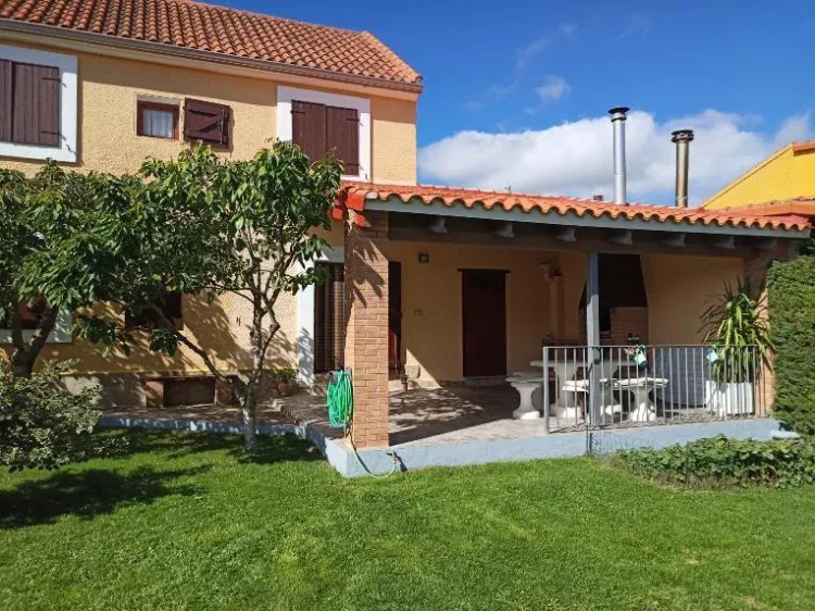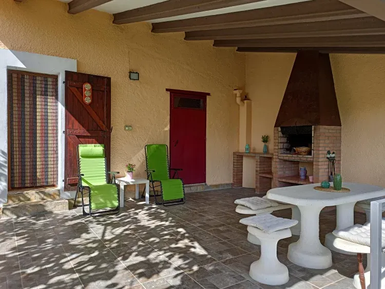 La casa dispone de calefacción en todas las habitaciones y chimenea en el salón, garaje,donde hay un segundo frigorífico . Desde la cocina accedemos al porche del jardín en el cual esta la barbacoa, para usarla con carbon vegetal, también hay una mesa con bancos de piedra y el jardín de unos 200m2 en el cual hay varios arboles frutales.