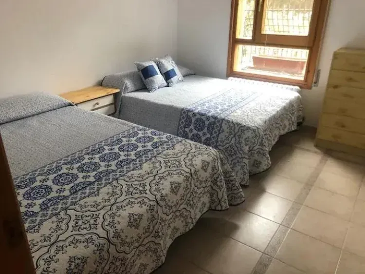 Dispone de 3 habitaciones. 5 camas dobles y una individual. Dos cuartos de baño, uno con ducha y el otro con bañera.