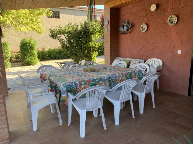 Su capacidad es de 12 personas. Hay posibilidad de ampliar a 15 con 3 camas supletorias. Cuenta cocina salón-comedor, amplio patio con porche cenador, hay barbacoa y parking privado dentro del terreno. La casa esta totalmente equipada. Tiene vitro. Horno. Micro, lavavajillas, secador en los baños , Televisión, libros y juegos para los niños. Admitimos mascotas .